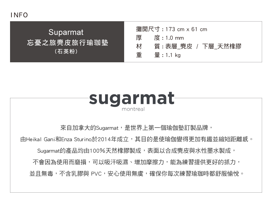 聲明:本產品權利義務屬於[ MOLLIFIX 瑪莉菲絲 ]所有 Sugarmat 忘憂之旅麂皮旅行瑜珈墊1mm SPORTY系列 - 瑜珈周邊